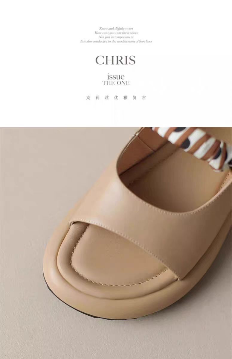 5分鐘前韓版女涼鞋 真皮韓式軟底 2025新款仙女涼拖 平底羅馬鞋 - 【新品上市】限時特惠 1入組